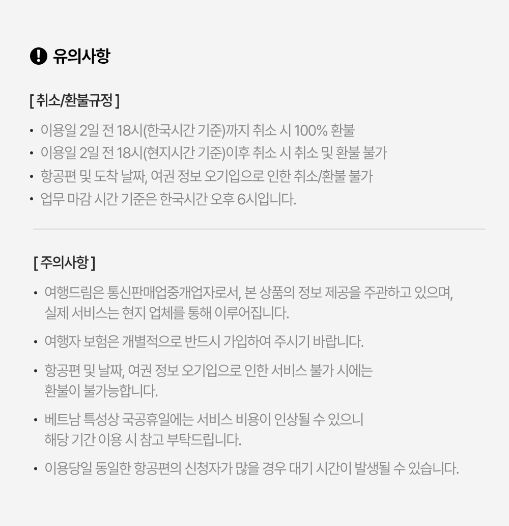 나트랑 공항 입국 시 전용 패스트트랙 라인을 이용해 일반 대기 줄 없이 보다 빠르게 입국 심사를 진행할 수 있는 서비스입니다. 공항에서의 대기 시간을 줄여 여행을 더욱 여유롭게 시작할 수 있습니다.